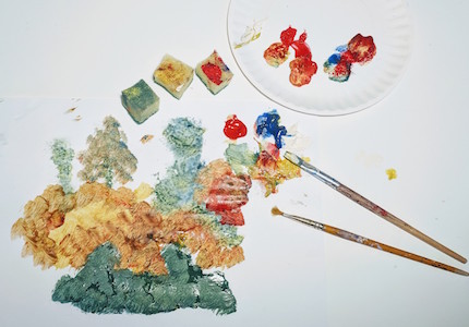 Children will experiment with mixing paints, creating new colors and thinking up their own names for them. They will paint a scene from nature.