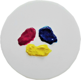 2. Provide each team with a paper plate and a bit of the following paint colors: YELLOW, BLUE and RED.